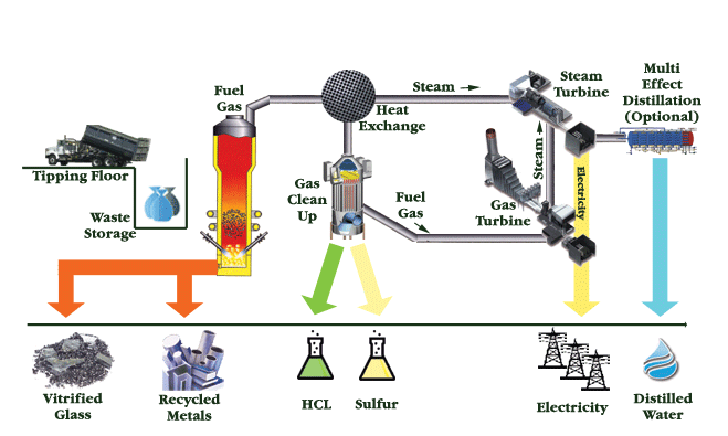 Plasma gasification involves heating waste in a sealed chamber in which there is almost no oxygen.